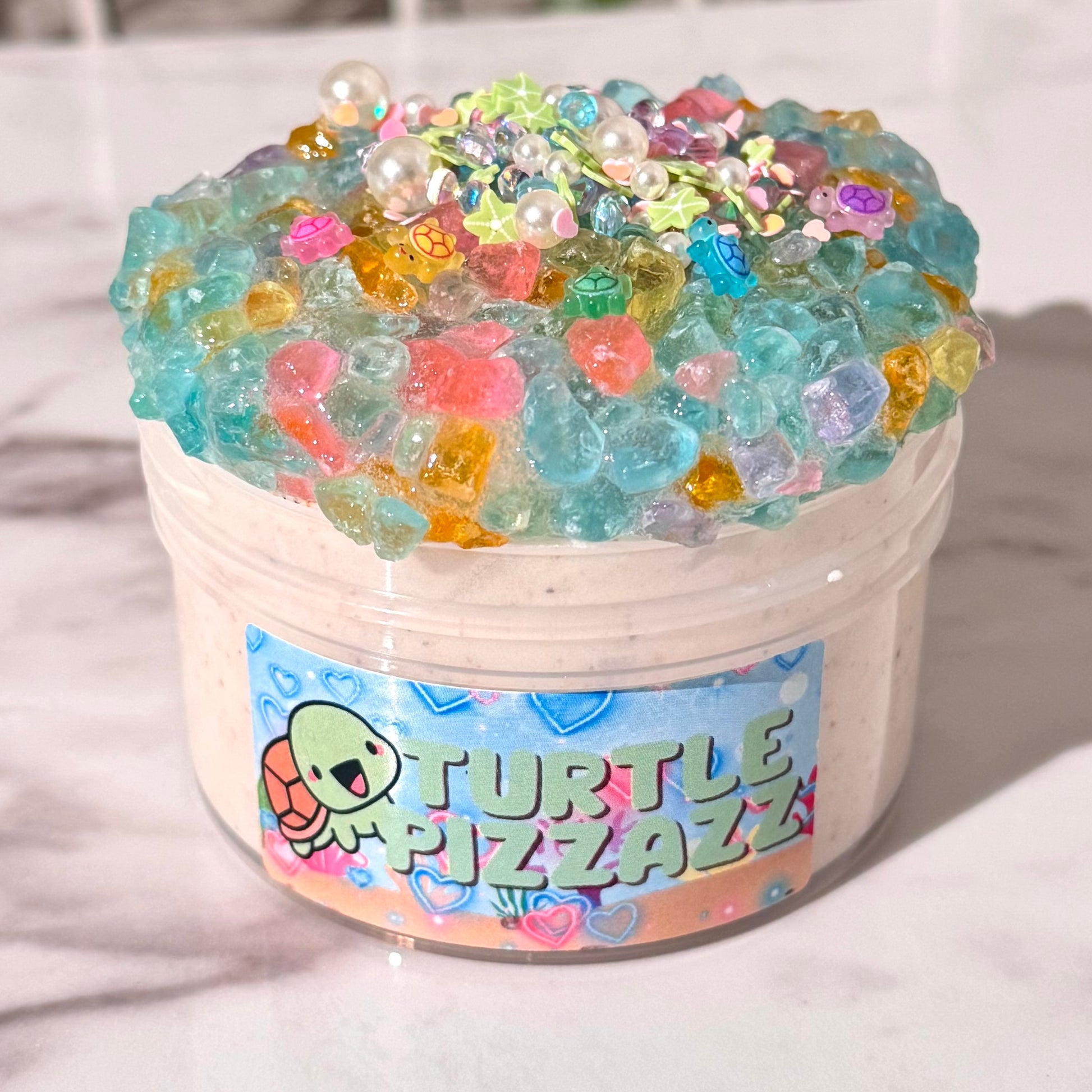 Every purchase comes with a baggie of borax, along with a slime care card, and an activator pen (10ml). To restore melted slimes, carefully follow the instructions provided. All slimes may require some playtime to return to their original shape. Over time, all slimes can melt — so it is essential to activate and take care of them properly. Don't forget to wash your hands before you play! Ignoring this step can cause irreparable damage to your slime. All of our slimes come in 6OZ containers & our toppers are approximately 1.8-3oz— and all sales are final. Never eat the slime! And be careful of potential small parts.
